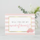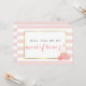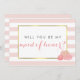 Demandez à votre bestie de se tenir avec vous avec cette belle carte. Le design se compose d'un délicat arrière - plan à rayures roses, d'une bordure en faux or et d'un groupe de pivoines aux jolis tons roux. Coordonnée avec nos suites d'invitation Pink Stripe & Blush Peony, fournitures de bureau, articles de maison et accessoires.