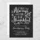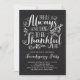 Il y a toujours quelque chose à remercier. Invités Invitations à votre événement avec cette invitation Thanksgiving personnalisable. Il présente une citation de Thanksgiving en calligraphie rustique sur un faux arrière - plan de tableau. Personnalisez en ajoutant vos détails. Cette invitation à l'action d'amitié est disponible sur d'autres cartons. Des éléments correspondants sont disponibles.