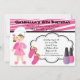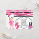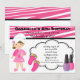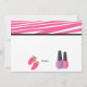 Commencez votre fête avec cette invitation zébrée rose et blanc branchée Parfait pour cet anniversaire Diva! Il y a cette adorable fille qui se tient en robe rose avec des chaussons assortis. Ses cheveux sont enveloppés dans une serviette. Il y a un centre en forme de bulle blanche avec une garniture doublée de noir et une garniture pointillée. Il y a deux bouteilles de vernis à ongles au fond de cette invitation. À côté de la mignonne fille, il y a une paire de tongs rose-chaud avec des tongs vert citron. C'est parfait pour la fête d'anniversaire de cette fille qui aime être choyée ! Une journée au spa ou une fête à la maison. Découvrez les nombreux autres produits et designs de cette ligne. © Illustrations JW