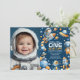 Add your baby’s photo to make the invitation even more special — the perfect way to highlight your little explorer’s first trip around the sun! With its navy blue and orange color tones, this gender-neutral invitation suits both boys and girls who love all things space.