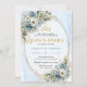 Ideal for classic, modern, garden, or elegant Quinceañera themes, this invitation combines delicate blue hues with warm gold details to achieve a look that feels both sophisticated and youthful. The greenery and eucalyptus bring freshness and balance, while the gold accents add just the right amount of sparkle for a meaningful 15th birthday celebration. Whether you are planning a formal Quinceañera, a traditional fiesta, or an intimate family gathering, this invitation sets a beautiful and memorable tone.