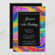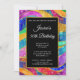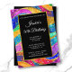 Créez votre propre fêté d'anniversaire de style stylisé 5x7 invitation style pour elle. L'arrière - plan décoratif est orné d'une feuille d'or imitation et d'une couverture rectangulaire noire solide. Customisez les styles, la couleur et la taille des polices blanches. L'art numérique moderne de luxe arc-en-ciel avec fausse parties scintillant s'imprime comme une photo. Fabuleux invitation d'anniversaire de fille pour votre meilleur ami.