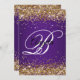 Une élégante invitation monogrammed 50e anniversaire 5x7 pour elle. Faux parties scintillant dorée brillante avec éclat contre une image graphique royale violet ombre. On peut customiser le monogramme de calligraphie noir et blanc au centre. Tous les éléments brillants de ce design moderne sont des graphismes numériques. Vous pouvez transférer la conception monogrammée sur le devant à un cadeau correspondant de petite ou moyenne taille. Idéal pour un Mardi Gras ou une fête d'anniversaire à thème mascarade pour elle.