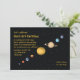 Une invitation colorée représentant huit planètes entourées d'espace noir. Une belle invitation à la fête d'anniversaire pour votre astronome en herbe.La carte est facile à customiser avec votre libellé, police, couleur de police et choix de six types de papier.