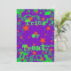 Invitation avec un arrière - plan tourbillonnant violet et vert parsemé d'étoiles orange magiques et brillantes et le mot 'Trick ou Treat?' écrit en vert vif. Un design personnalisable violet, vert et orange pour vous permettre d'ajouter vos propres textes, images et idées. Le texte peut facilement être modifié à l'aide du modèle fourni ou cliquez sur le bouton "Customiser" pour effectuer d'autres modifications. Enveloppe correspondante et timbre postal disponible. Créé à l'aide de techniques numériques par Jess Perry.