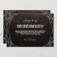 Goth sera-tu ma carte de demoiselle d'honneur en noir en détresse avec des polices de goth et des toiles d'araignée dans les coins.
