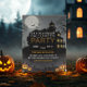 Ambiance étrange avec ce design d'invitation de maison obscurci et hantée. Noirs profonds, jaunes et oranges éclatants, silhouette de manoir hantée, ciel clair de lune avec chauves-souris. Idéal pour les hôtes de la fête d'Halloween, les costumes-bashes et les événements nocturnes éffrayants. Invitation imprimable/numérique pour adultes ou familles désirant une élégance déplaisante.