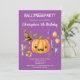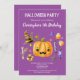 Invitation violette de la fête Anniversaire de enfant de l'Halloween taculaire. 1er 2ème 3ème 4ème 6ème 7ème 9ème 10ème 11ème 12ème 14ème 15ème 16ème 17ème 18ème, tout âge. Pour plus de personnalisation, vous pouvez cliquer sur le bouton "Customiser" et utiliser l'outil de conception pour modifier le modèle.