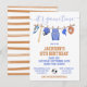 Sports Invitations Anniversaire Fête. Caractéristiques : maillot de basketball aquarelle, chaussures de football, batte de baseball, casque de football, gant et balle de baseball, casquette sport sur la ligne de vêtements dans les couleurs bleu et marron. Tout libellé peut être modifié, à n'importe quel anniversaire d'âge ou à un baby shower. Pour apporter d'autres modifications, accédez à Personnaliser ce modèle. En bas, vous verrez "Vous voulez customiser encore plus ce design ? Cliquez sur EDIT à l'aide de l'outil Design. À partir de là, vous pouvez changer certaines polices et certaines couleurs, déplacer les choses ou supprimer ce dont vous avez besoin.