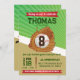 Une invitation amusante et colorée à l'anniversaire du baseball. Doté d'un grand gant de baseball et d'une balle sur le devant et de joueurs de baseball sur le dos. Rétro insinué.