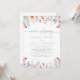 This spring colorful wildflower elopement reception card is perfect for a modern post elopement party. The design features an elegant calligraphy script, which reads wedding in muted gray, hand-painted watercolor purple, violet, burgundy, red, pink, blush, yellow wildflowers, green leaves assembled into a seamless floral patterns.