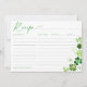 Recipe Card for Bridal Shower invitation insert with hand drawn watercolor shamrocks in green. This design is perfect for a St. Patrick's Day themed Bridal Shower.