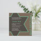 Une invitation moderne, verte et marron Bar Mitzvah avec l'étoile de David.