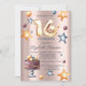 Un Sweet 16 moderne, chic et glamour avec ballons, étoiles et gâteaux sur un arrière - plan d'or rose.