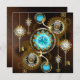 Turquoise lenses with antique watch with brass gears and golden keys on rusty, brown background. Steampunk style.