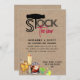 Rustique Stock l'invitation de la partie d'engagement bar - ou se sentent libre de modifier pour une autre occasion. Le design est intitulé "stock le bar" en lettres décoratives avec un tire-bouchon. Il présente une typographie de style art déco et une aquarelle illustrant une flûte de champagne, des feuilles de raisin et des verres d'esprit.