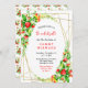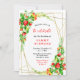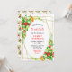 This fun and whimsical birthday party invitation features watercolor strawberries, daisies and foliage on a gold geometric frame. The text combines handwritten script and serif fonts for a stylish and modern look. This is perfect for a summer rustic birthday party.