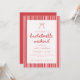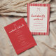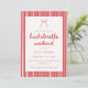 Striped Coquette Bow Bachelorette Weekend Details Invitation. A cute, modern and minimalistic red and white striped all-in-one bachelorette invitation. Add bride's name, dates, location and RSVP info on the front, and add your bachelorette weekend details and payment info on the back.