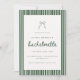 Invitation Striped Olive Green Coquette Bow Bachelorette