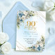 Invitation Stunning Boho Dusty Blue Floral Gold 90th Birthday