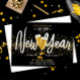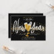 Cette élégante invitation à thème doré et noir avec écriture manuscrite moderne blanche appelle amis et famille à se réunir pour une fête de Nouvel An. Il a un arrière - plan glam, noir avec de faux confettis en or. Le dos est noir. Il peut être personnalisé, vous pouvez éditer les textes et faire votre propre invitation! Également disponible en format téléchargement numérique Commandez-le maintenant!