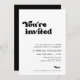 Un thème rétro chic : adoptez ce design typographique légèrement vintage et élégant pour votre papeterie d'évènement spécial, avec un thème classique noir et blanc. Couleurs et arrière - plans de texte personnalisables.