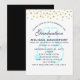 Une invitation pour une célébration de fin d'études en soins infirmiers. Conçue avec des points de confettis dorés faux le long du haut. Un stéthoscope bleu pastel derrière le texte de la fête.