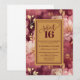 Watercolor 16th birthday invitation with burgundy and blush roses, gold leaves, and boho style, professionally printed by Zazzle on premium cardstock with rich color, crisp detail, and an elegant finish.
