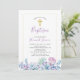 Célébrez votre journée spéciale avec ce magnifique design d'invitation au baptême. Ce design présente de belles fleurs Succulents et croix texturée dorée. Vous pouvez customiser tout le texte et la couleur arrière - plan.