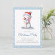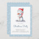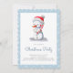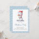 Simple invitation de Noël bleu pétoncle avec l'illustration d'un bonhomme de neige tenant un sucre de canne. Personnalisez le texte avec vos propres informations. Illustré et dessiné par Patricia Alvarez.