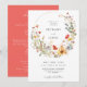 This elegant design features a delicate wreath of rustic watercolor wildflowers. Perfect for whimsical spring and summer weddings.