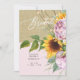 Invitation Rustique De Douche Nuptiale. Fleurs de soleil et Pink Peonies lumières, bois. Douche. Brûler. Floral. Rose.