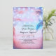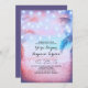 Une invitation à la fête de fiançailles sur la plage absolument romantique et unique, avec un chapelet de lumières accrochées sur les palmiers. Invitations tropicaux et modernes de beach fiançailles avec coucher de soleil bleu et violet en bord de mer. Parfait pour la fête des fiançailles de l'île de destination aussi.