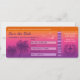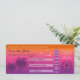 Le mariage de destination de Destei enregistrer la conception de la carte de date avec un faux thème d'embarquement. Le design comprend des silhouettes tropicales de palmiers violets, trois silhouettes d'oiseaux volants et une silhouette d'avion. L'arrière - plan est un bel dégradé orange-rose-violet qui donne au design un aspect tropical au coucher du soleil. Le design a plusieurs zones de texte personnalisables parfaites pour écrire la date du mariage, les noms des personnes se mariant et même l'emplacement du mariage.