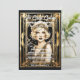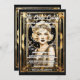 Un cadre de style art déco vintage en or orné a une belle illustration de style comique du visage d'une blonde Flapper girl des années 1920 qui a de beaux yeux sulfureux. Elle porte un haut sans manches et un bandeau doré et est encadrée par un cadre de détails art déco scintillant. Le design s'adapte aux fêtes à thème des années 20, aux célébrations à thème art déco, aux fêtes de mariée Great Gatsby et aux événements d'entreprise. Ils sont parfaits pour un usage professionnel et personnel. Le dos a le même cadre orné avec un modèle pour votre titre ou des informations supplémentaires.