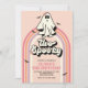 Deux Éffrayants ! Retro super Ghost Halloween invitation fête d'anniversaire. Invitation de bain Spooktacular de deuxième anniversaire avec fantôme rétro, fleurs et chauves-souris.