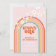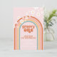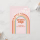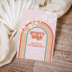 Retro inspiré super une invitation de premier anniversaire avec l'arc-en-ciel hippie style, marguerites et polices et couleurs boho.
