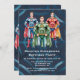 Faites de la fête de votre petit héros une expérience inoubliable avec cette invitation audacieuse et colorée à la fête d’anniversaire de super héros ! Doté de trois super-héros puissants en costumes rouges, bleus et verts avec capes et étoiles, dressés contre un arrière - plan de style web, ce design amusant est parfait pour les garçons qui aiment l'action et l'aventure. Idéal pour les anniversaires, les soirées à thème ou les rassemblements de super-héros, cet invitation donne le ton d'une célébration épique.