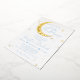 Bienvenue à votre petit et fêtez la fête des parents pour être avec cette invitation fantaisiste avec la lune d'or, les étoiles et les empreintes bleues de bébé. C'est un design parfait pour les baby showers bébé garçon et plus encore!