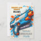 Préparez-vous à l'action ! Cette invitation de 9e anniversaire de style néon amusant et cool présente des blasters Nerf, des cibles et une énergie audacieuse "Game On" dans un design d'aquarelle dynamique. Idéal pour une fête militaire pleine de munitions avec un éclat d'arcade rétro. Un espace de texte personnalisable facilite la personnalisation de votre héros d'anniversaire ! Amusez-Vous