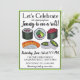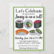 Invitation présentant une illustration originale au marqueur d'un assortiment de rouleaux de sushi maki japonais, avec LET'S CÉLÉBRER dans une police amusante. Idéal pour célébrer une remise de diplôme, une promotion ou un autre événement de félicitations. Personnalisez simplement avec vos informations.