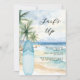 Une invitation à la fête estivale sur la plage. Plage de sable couleur eau, vagues de l'océan et palmiers en arrière - plan, planche de surf bleue sur la plage.