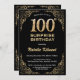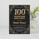 Surprise 100e anniversaire Black and Gold Parties scintillant Cadre Anniversaire Invitation. Pour plus de personnalisation, cliquez sur le bouton "Customiser" et utilisez notre outil de conception pour modifier ce modèle.