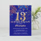 Surprise 13e anniversaire Marine Blue and Gold Rainbow Fireworks Invitation. Pour plus de personnalisation, cliquez sur le bouton "Customiser" et utilisez notre outil de conception pour modifier ce modèle.