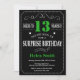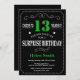 Invitation Surprise 13e anniversaire noir et vert Chalkboard