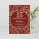 Surprise 15e anniversaire Bourgogne rouge foncé et or modèle floral Anniversaire Invitation. Pour plus de personnalisation, cliquez sur le bouton "Customiser" et utilisez notre outil de conception pour modifier ce modèle.