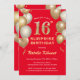 Surprise 16e anniversaire Ballons de Parties scintillant rouge et or Invitation Anniversaire. Pour plus de personnalisation, cliquez sur le bouton "Customiser" et utilisez notre outil de conception pour modifier ce modèle.