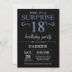 Invitation surprise 18e anniversaire avec Arrière - plan de Parties scintillant noir et bleu. Tableau de bord. Anniversaire adulte. Hommes ou femmes Anniversaire Invitation. Quel que soit l'âge. Pour plus de personnalisation, cliquez sur le bouton "Customiser" et utilisez notre outil de conception pour modifier ce modèle.