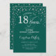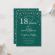 Invitation surprise 18ème anniversaire de fête. Design élégant en vert émeraude et faux argent parties scintillant. Fonctionne la police de script et les confettis de diamants. Salutations à 18 ans ! Message-moi si vous avez besoin d'une personnalisation plus poussée.