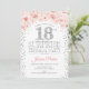 Invitation surprise 18ème anniversaire de fête. Design élégant en faux parties scintillant argent, blanc et rose. Comprend des confettis, des caractères de script et des fleurs roses d'aquarelle. Message-moi si vous avez besoin d'une personnalisation plus poussée.